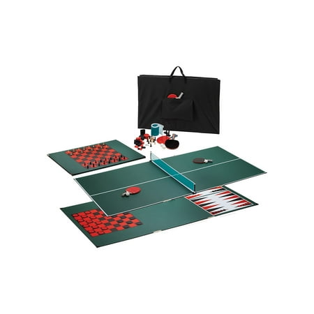 Viper Portable Tri-Fold Table Tennis and Game Table Top comes with everything you need to play included: 1 net and post set, 2 paddles, and 2 table tennis balls. This table also comes with other games which makes it different from other table conversion tops. Additional games include; Chess, Backgammon, and Checkers.
