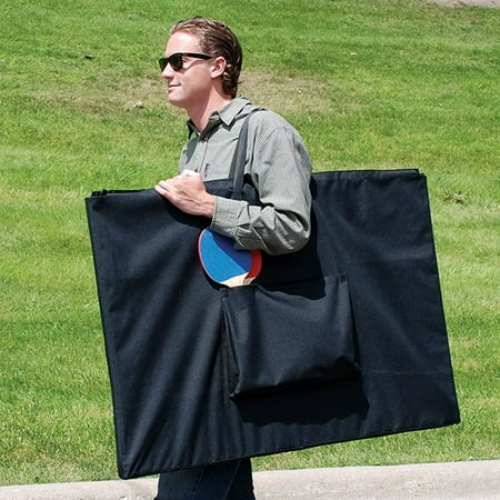 This conversion top can be folded into three sections which makes it easy to store. It comes with a durable carrying case and a side pocket to safely transport, and store all the accessories in one place. Unfolded table dimensions are 84” L x 42” W x 1/4″ H.